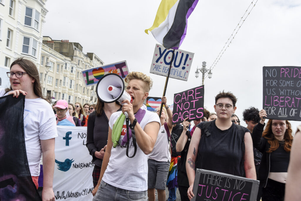 Fotos: Karin (Etienne) Scheidegger arbeitet als freischaffende_r Fotografix & hat zwischen 2018 und 2022 Trans Pride Brighton fotografisch begleitet. Scheidegger ist Herausgeberix von «Klick Reportage Magazin» und hat 2022 das Projekt #ThisIsWhatNon-BinaryLooksLike #SwissEdition ins Leben gerufen. www.karinscheidegger.ch